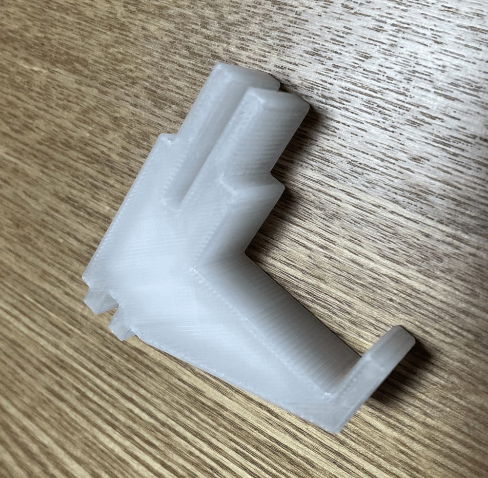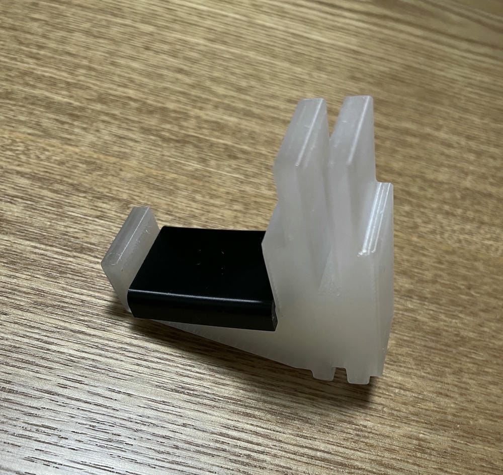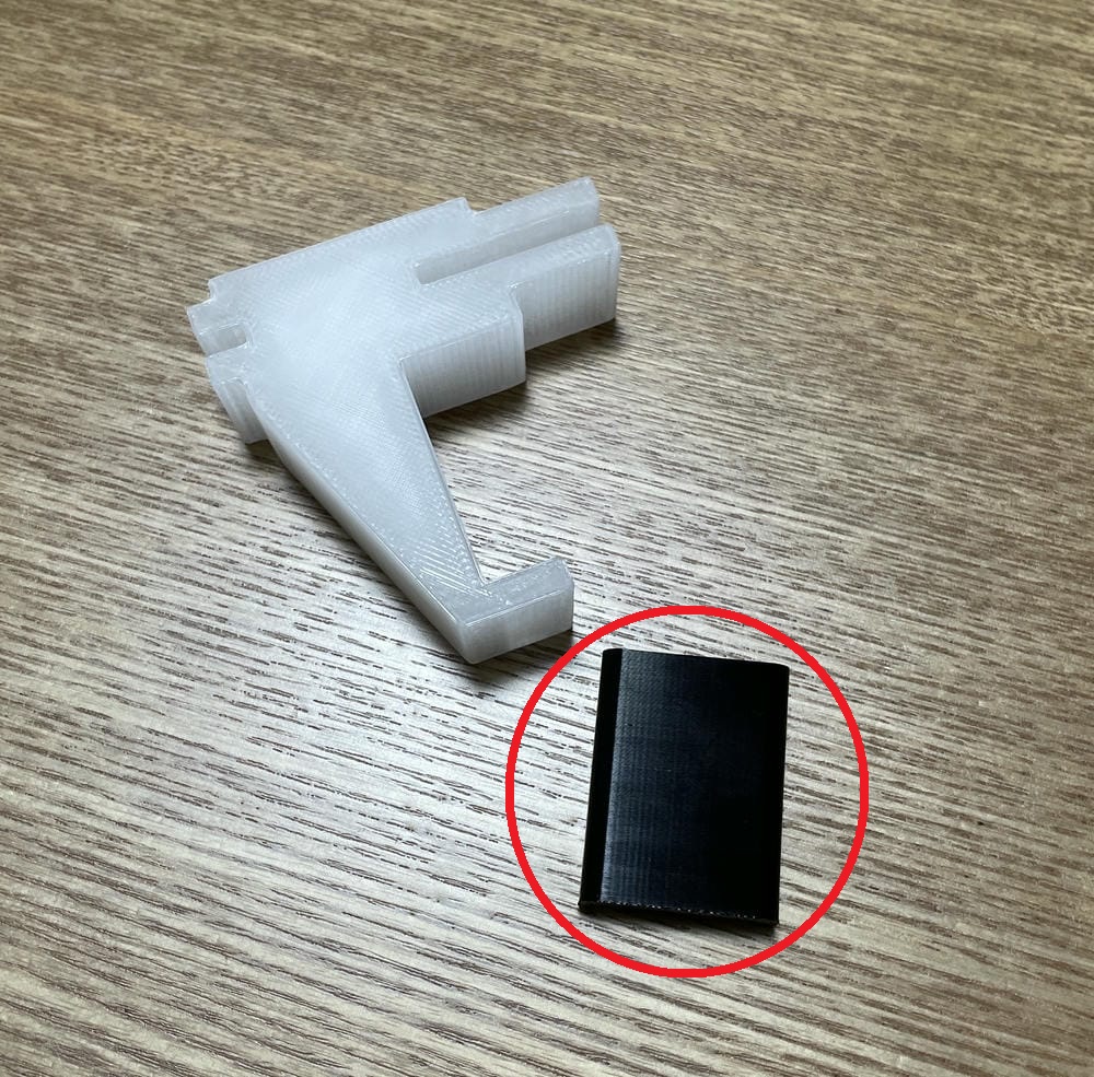 パーツを分けることによって、ワイヤーにつける部分(白い方)は固い素材で作成し、今回作成したパーツ(黒い方)は柔らかい素材で作成することなどができます。
