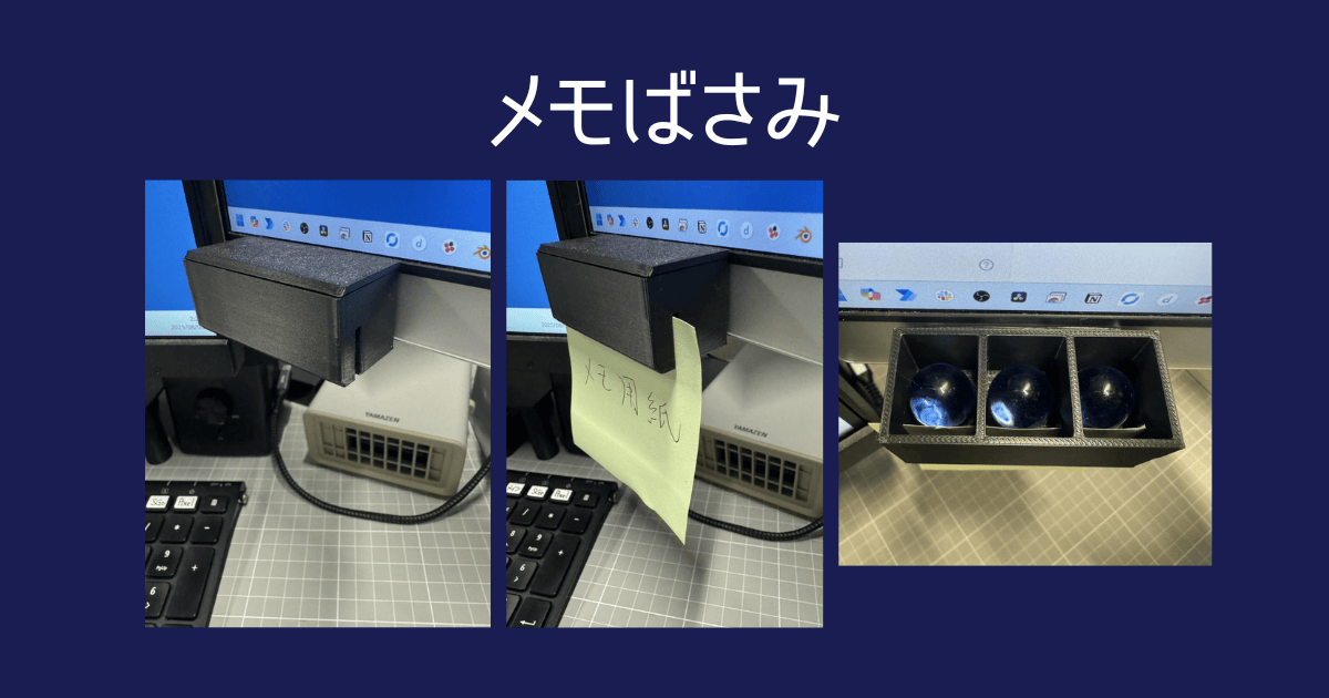 2026.01.01 3Dデータ モニター下収納 ak 3Dデータの配布 今回紹介する製品はこちら!モニター下の収納です。 少し見えにくいですが、モニター下にある台になります。デスクスペースを広げることができますよ。 こちらの片方の足が半分になった台2つを、 このように、筒状のパーツをはめることで繋げています。 メイン部分ダウンロード (.stl) 足固定パーツダウンロード (.stl) ホームへ #スタンド ABOUT ME DOGクリエイターYouTube動物と工作をこよなく愛する男。超が付くめんどくさがり屋。快適な生活のため、3Dプリンターでなんでも作成。DIYも好きで、頻繁に模様替えをしています。猫と暮らしています。